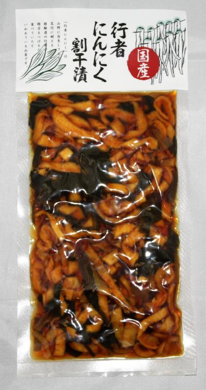 行者にんにく割干漬 国産割⼲⼤根と⾏者にんにくを醤油ベースの漬け液で丁寧に漬け込み、行者にんにくの風味豊かな味わいに仕上げました。 【商品の分類】 漬物・佃煮/漬物 【内容量】 220g 【保存温度帯】 常温 【賞味期限】 製造日から150日 【業務用・小売用】 小売用 【希望小売価格】 550円(税抜)