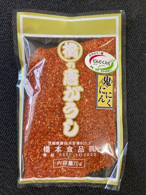 鬼にんにく唐がらし 一味ににんにくを鬼のようにぶち込んだ逸品。特に肉類に絶妙 【商品の分類】 調味料/ 【内容量】 70g 【保存温度帯】 常温 【業務用・小売用】 小売用 【希望小売価格】 490円(税抜)