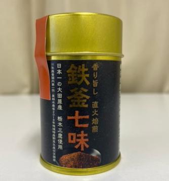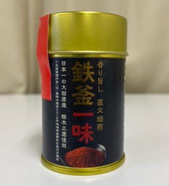 鉄釜一味(缶入) 輸入品とうがらしに比べて強い辛みと香り、独特の旨味風味は栃木三鷹ならではのもの。 鉄釜による焙煎処理によって独特の香ばしい香りもさらに味を引き立てます。 【商品の分類】 調味料/香辛料、スパイス 【内容量】 10g 【保存温度帯】 常温 【賞味期限】 製造日から545日 【業務用・小売用】 小売用 【希望小売価格】 602円(税抜)
