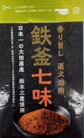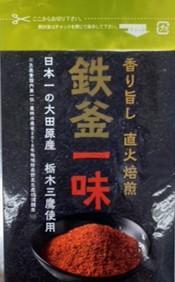 鉄釜一味(小袋) 輸入品とうがらしに比べて強い辛みと香り、独特の旨味風味は栃木三鷹ならではのもの。 鉄釜による焙煎処理によって独特の香ばしい香りもさらに味を引き立てます。 【商品の分類】 調味料/香辛料、スパイス 【内容量】 10g 【保存温度帯】 常温 【賞味期限】 製造日から545日 【業務用・小売用】 小売用 【希望小売価格】 389円(税抜)