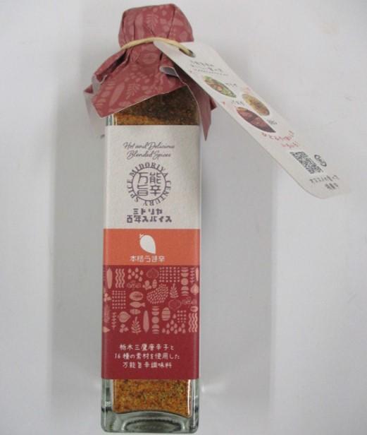 ミドリヤ百年スパイス万能旨辛 創業100年を迎えた唐辛子専門メーカーが、唐辛子と相性の良いスパイスを厳選し調合した万能スパイスです。 【商品の分類】 調味料/香辛料、スパイス 【内容量】 110g 【保存温度帯】 常温 【賞味期限】 製造日から365日 【業務用・小売用】 小売用 【希望小売価格】 1,000円(税抜)