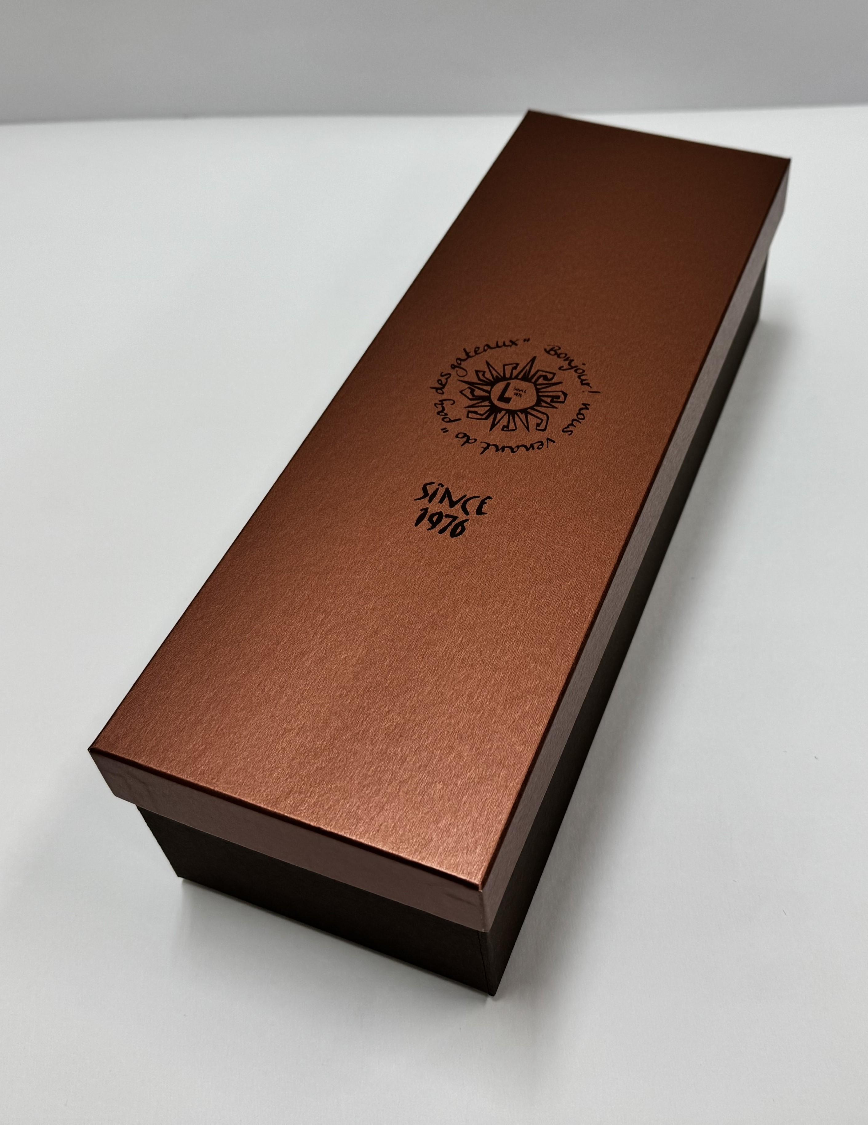 磁石付の箱 この製品は、神奈川県、川崎市のケーキ屋さんにて販売されている貼箱になります。蓋となる表紙と身箱に磁石を取り付けた箱です。 【商品の分類】 / 【内容量】 【保存温度帯】 【業務用・小売用】 業務用 【希望小売価格】 未定