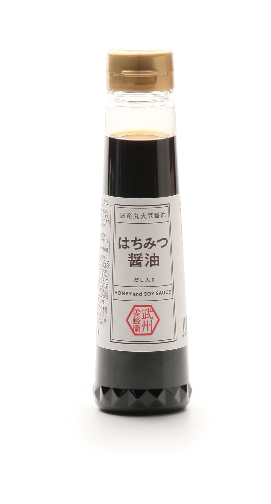 はちみつだし醤油 地元熊谷で作られた丸大豆醤油にアカシア蜂蜜、昆布だし、かつおだし、を加え旨味、甘みのバランスの取れただし醤油となっております。お刺身、揚げ物、御餅等によく合います。 【商品の分類】 / 【内容量】 230g 【保存温度帯】 【業務用・小売用】 小売用 【希望小売価格】 648円(税抜)