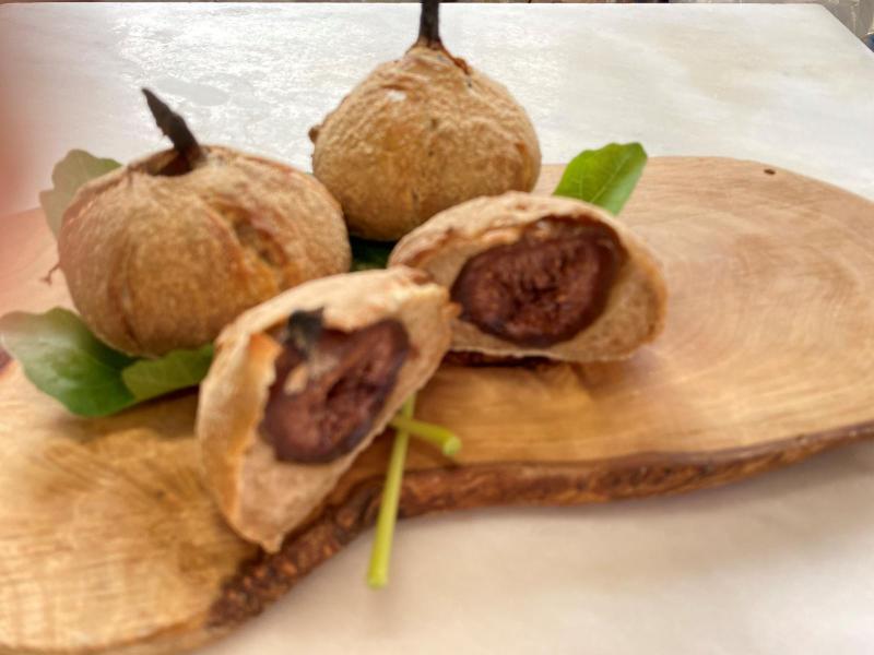いちじくグラッセのパン 有機肥料栽培で生産した自社農園産のいちじくグラッセをたっぷり入れた地場産小麦と北海道産全粒粉を使い焼き上げたパン。天然酵母使用のセミハードパン他に自社農園産ブルーベリージャムを使った「ブルーベリー食パン」自社農園産オリーブを使った「オリーブプチフランス」とのセットもあります。 【商品の分類】 パン・シリアル類/菓子・パン 【内容量】 1個 【保存温度帯】 冷凍 【賞味期限】 製造日から90日 【消費期限】 D+150日 【業務用・小売用】 小売用 【希望小売価格】 2,350円(税抜)