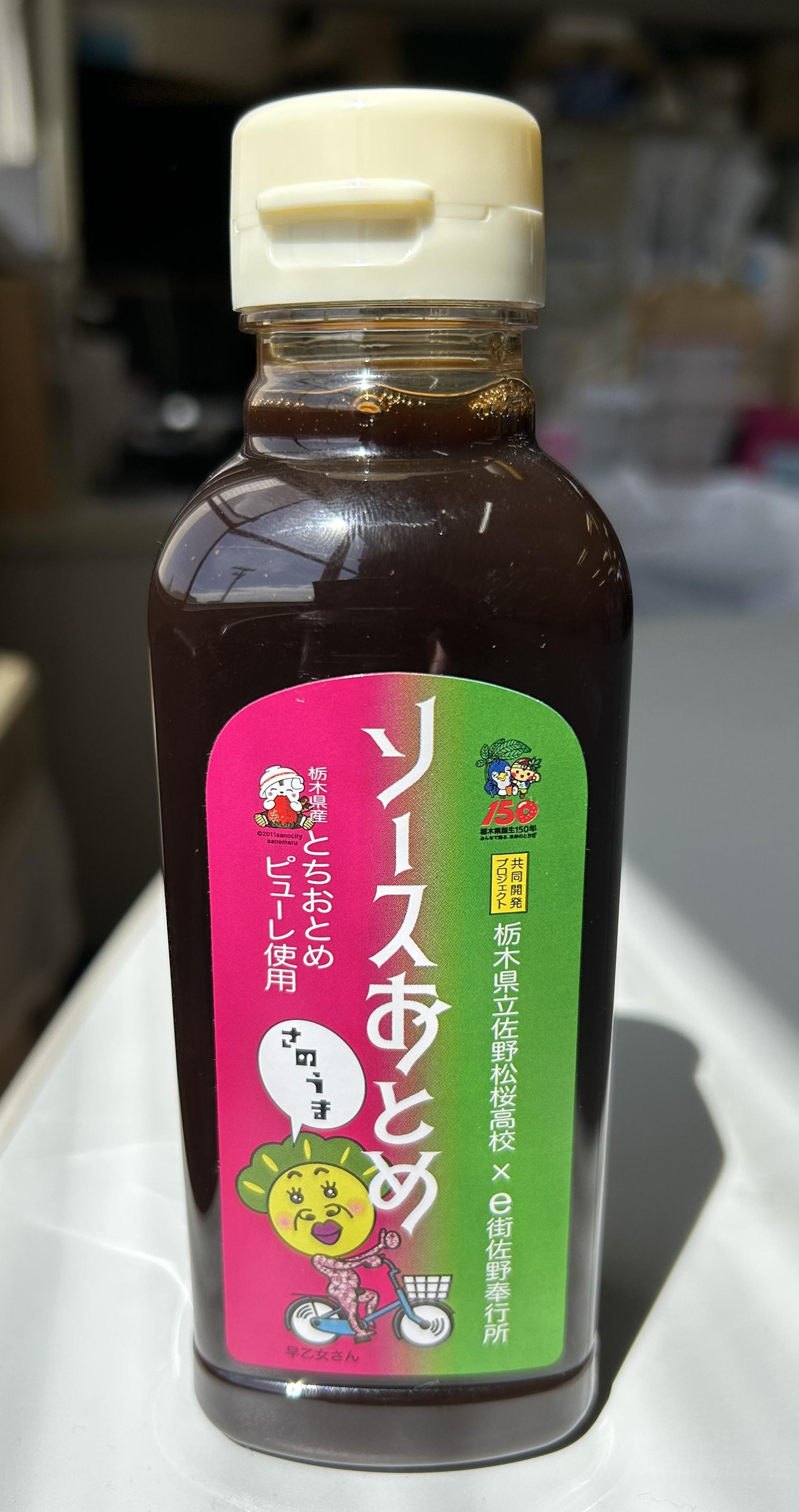 ソースおとめ 栃木県名産のいちご「とちおとめ」のピューレを使用したオリジナルソース。とんかつやフライなどの揚げ物の他、パスタソースやハンバーグソースなどの隠し味として使える万能調味料である。製造元は、埼玉県本庄市の「高橋ソース株式会社」。 【商品の分類】 / 【内容量】 【保存温度帯】 【業務用・小売用】 小売用 【希望小売価格】 500円(税抜)